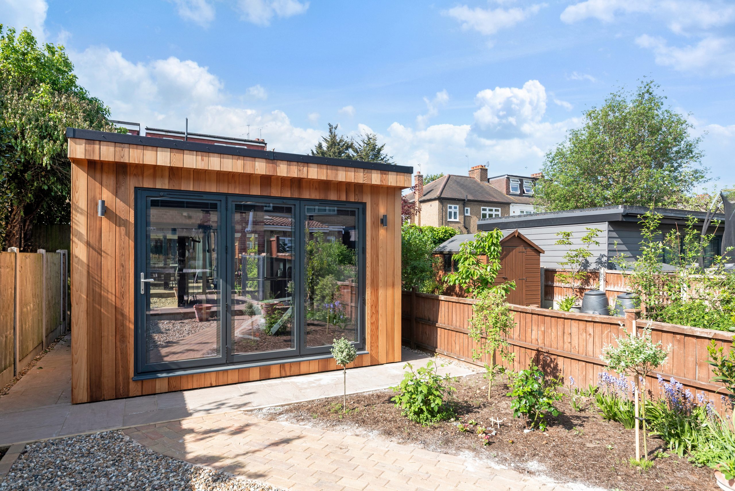 We turned a quiet London garden into an all-season home gym, complete with durable composite cladding, wide sliding doors, and built-in cooling. Designed from our Classic Range, this compact studio blends style, function, and fitness just steps from the back door.