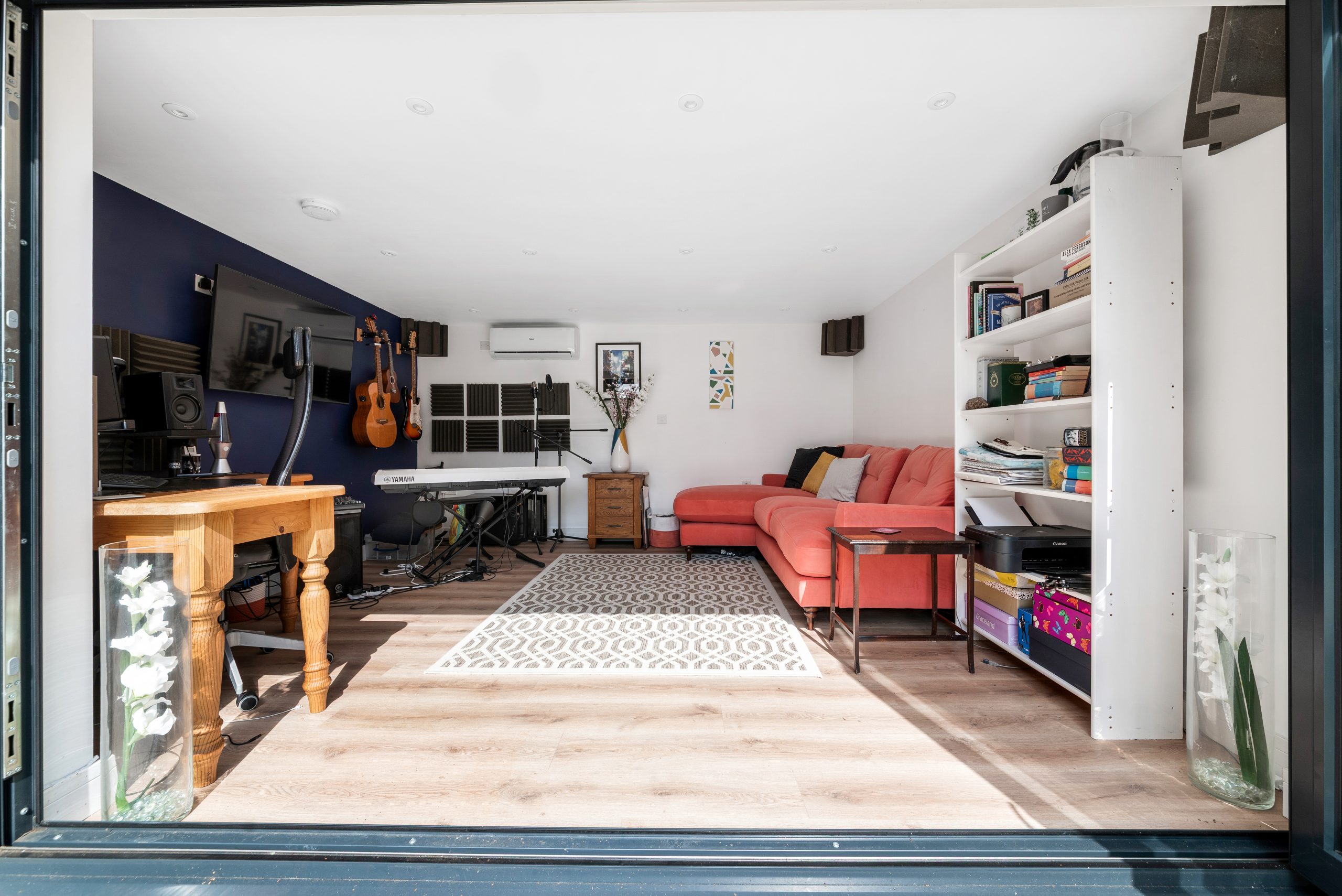 Whether practising, composing, or relaxing, this garden room provides a beautiful, versatile environment where music and comfort coexist in harmony, making it a true extension of the home and a personal creative retreat.